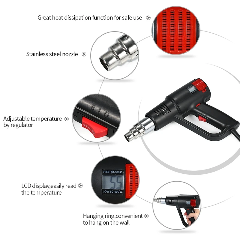 Product Name: 2000W przemysłowe gorące narzędzie pneumatyczne Lcd cyfrowy sterowany temperaturą dmuchawa ciepła regulowany elektrycznie temperatura ciepło narzędzie ue wtyczka
