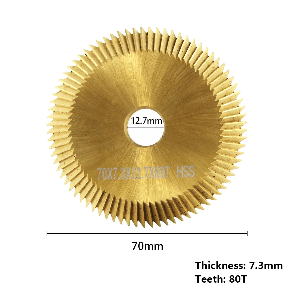 Product Name: 1pc pokryte tytanem klucz maszyna Cutter 70x7.3x12.7mm 80T HSS klucz duplikat maszyna piła ostrze do cięcia klucze ślusarz narzędzia