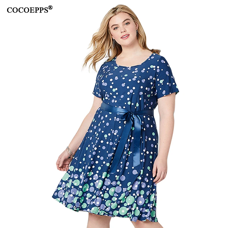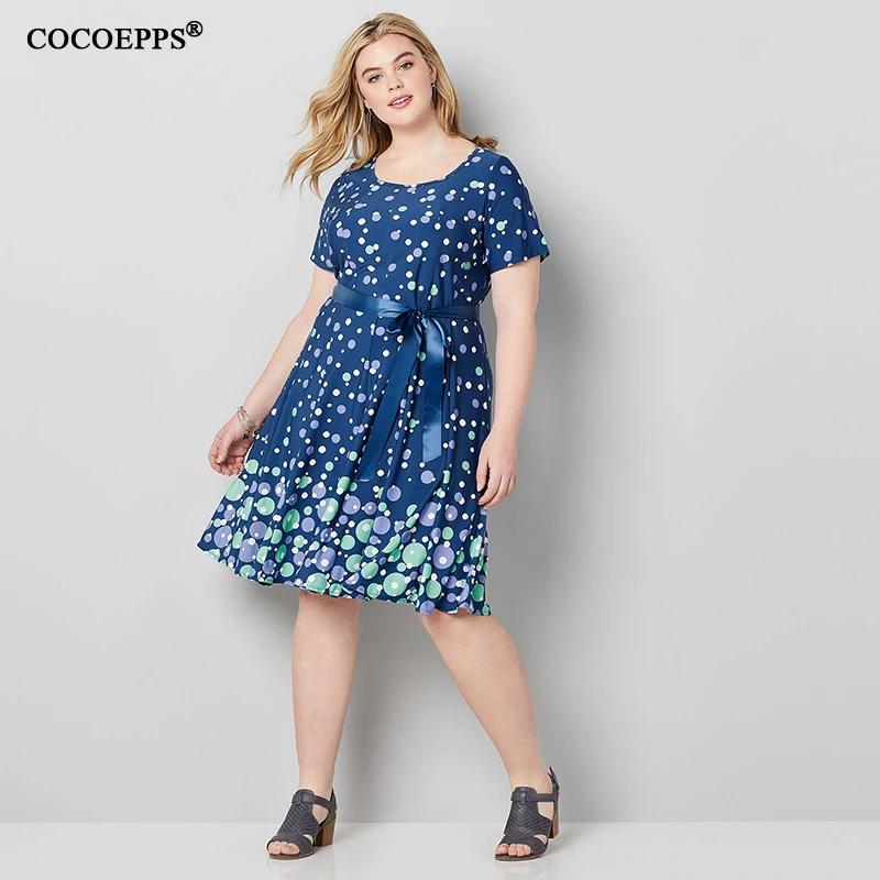 Special Offer COCOEPPS sukienka kobiety 2019 Plus rozmiar Party lato Polka Vintage niebieska kropka nadrukowana sukienka luźna na co dzień 5XL 6XL sukienki w dużych rozmiarach Discount 25% Today!