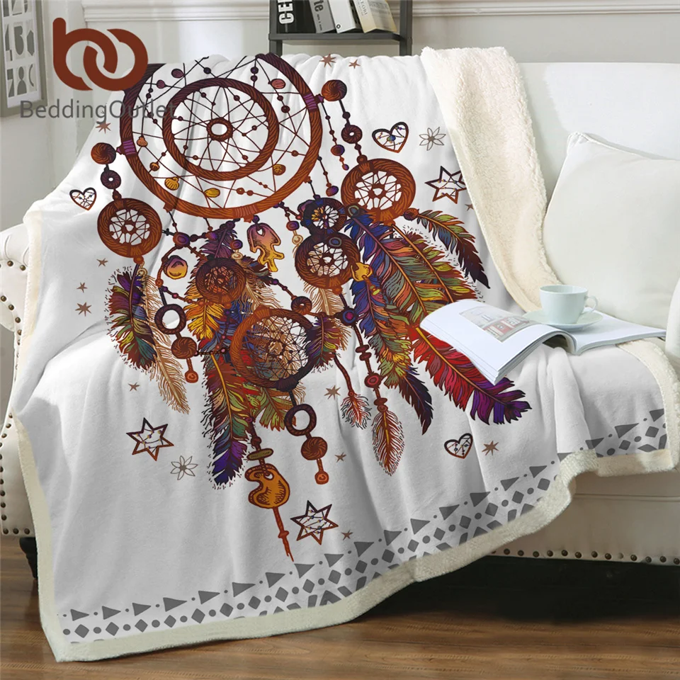 Special Offer BeddingOutlet aksamitny pluszowy koc ozdobny Hipster akwarela Sherpa koc na kanapie pióra do łapacza snów drukowane miękkie rzut Discount 40% Today!