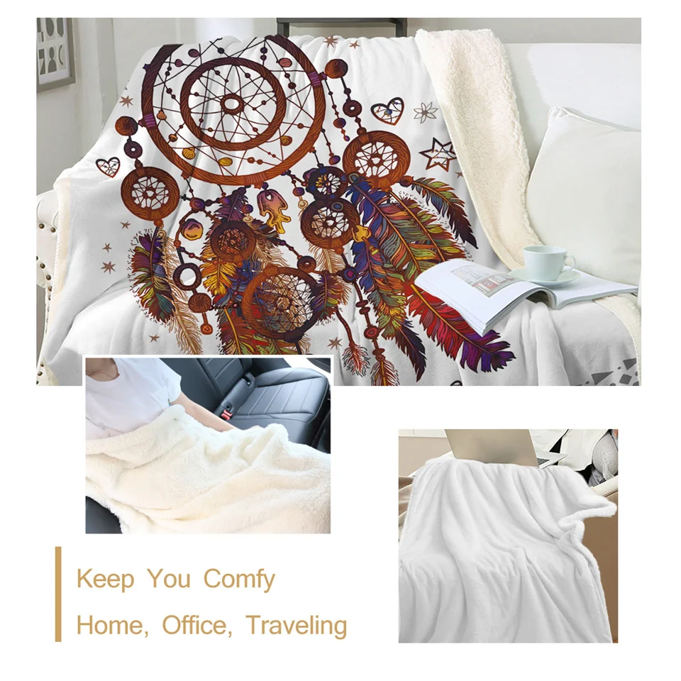 Product Name: BeddingOutlet aksamitny pluszowy koc ozdobny Hipster akwarela Sherpa koc na kanapie pióra do łapacza snów drukowane miękkie rzut