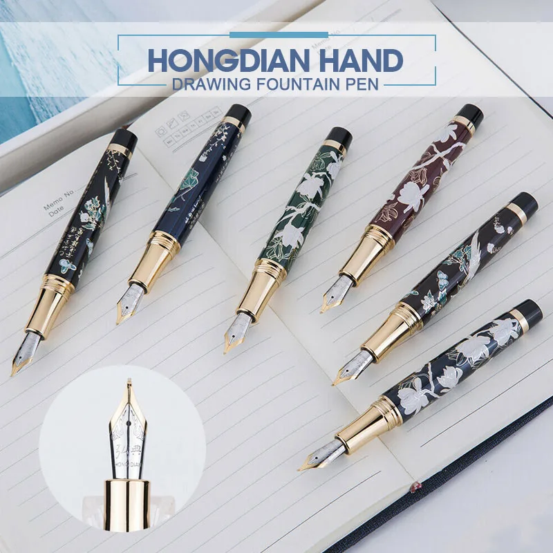Special Offer HongDian rysowanie ręczne pióro wieczne niebieski sroka stalówka 0.5MM stalówka długopisy prezent biuro biznes pisanie zestaw dostawa artykułów piśmienniczych Discount 40% Today!