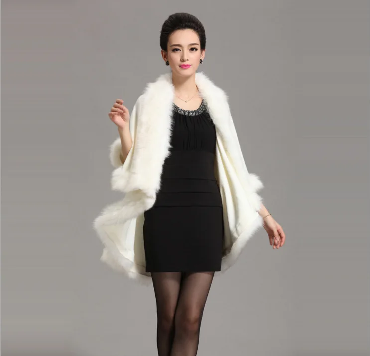 Product Name: SC97 2018 Winter Warm długie dzianiny 2 warstwy Poncho Cape niebieski kaszmirowy luźny sweter kobiety imitacja futra europejski sweter płaszcz