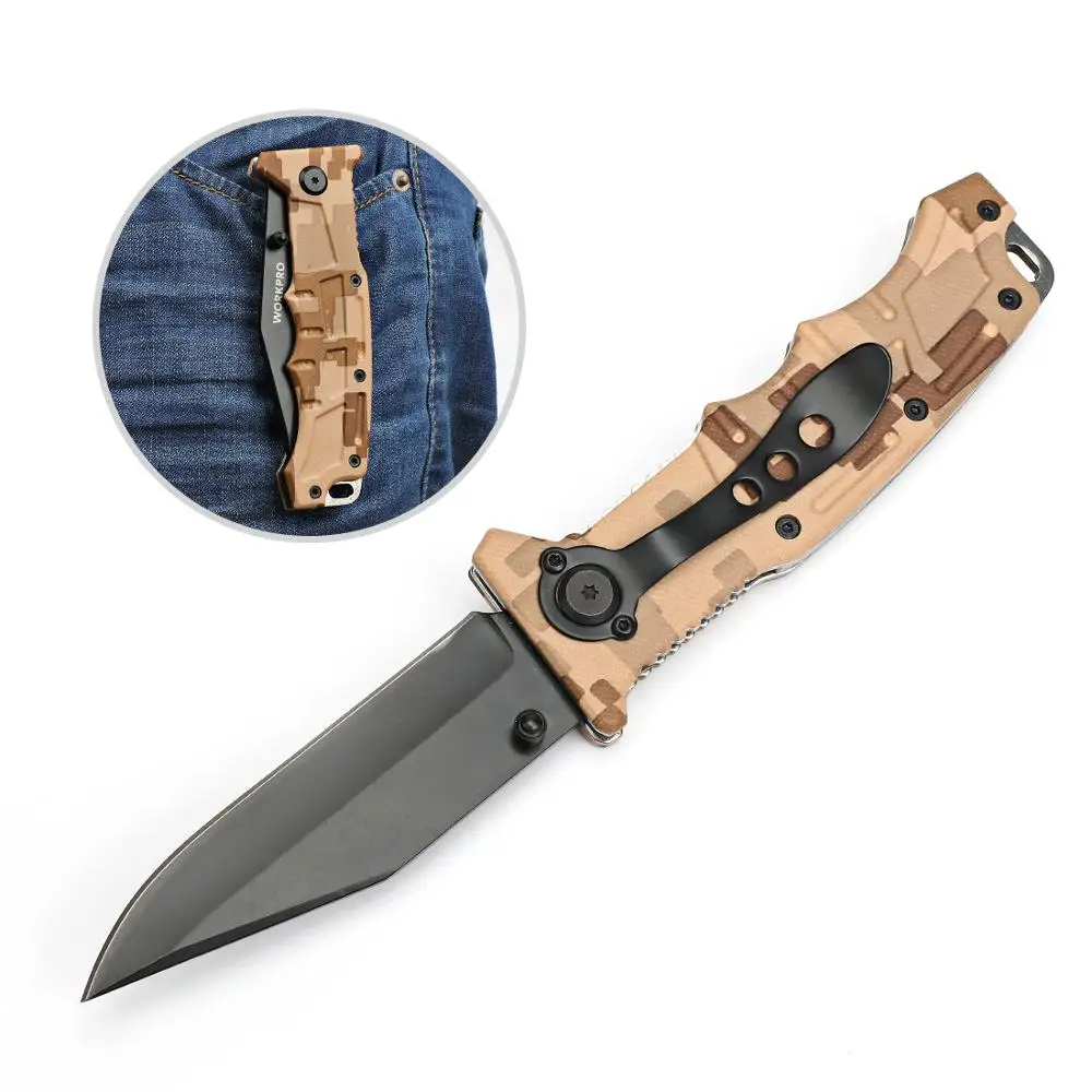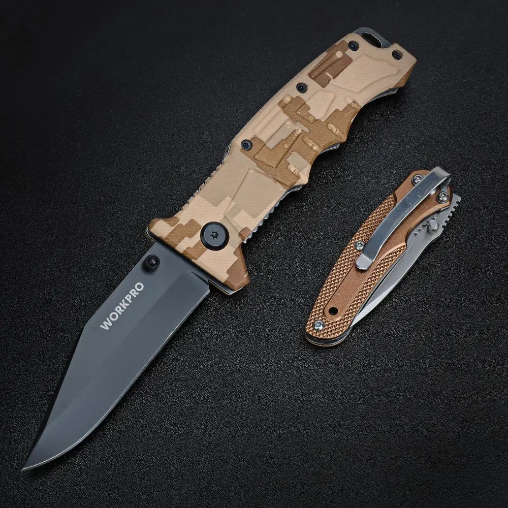 Special Offer WORKPRO 2PC składane noże Desert Camo zestaw noży Outdoor Camping noże Discount 50% Today!