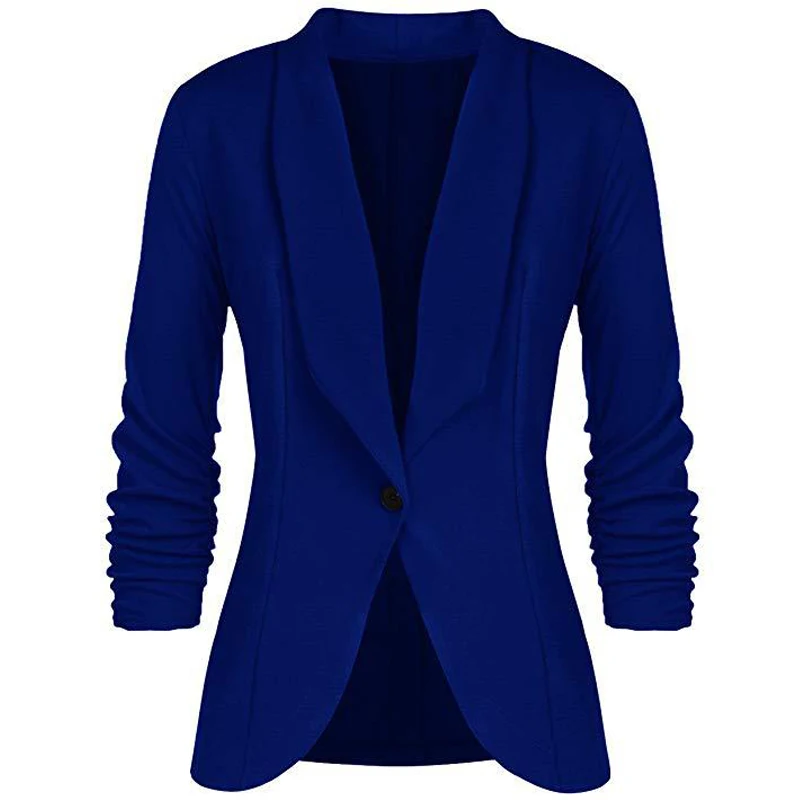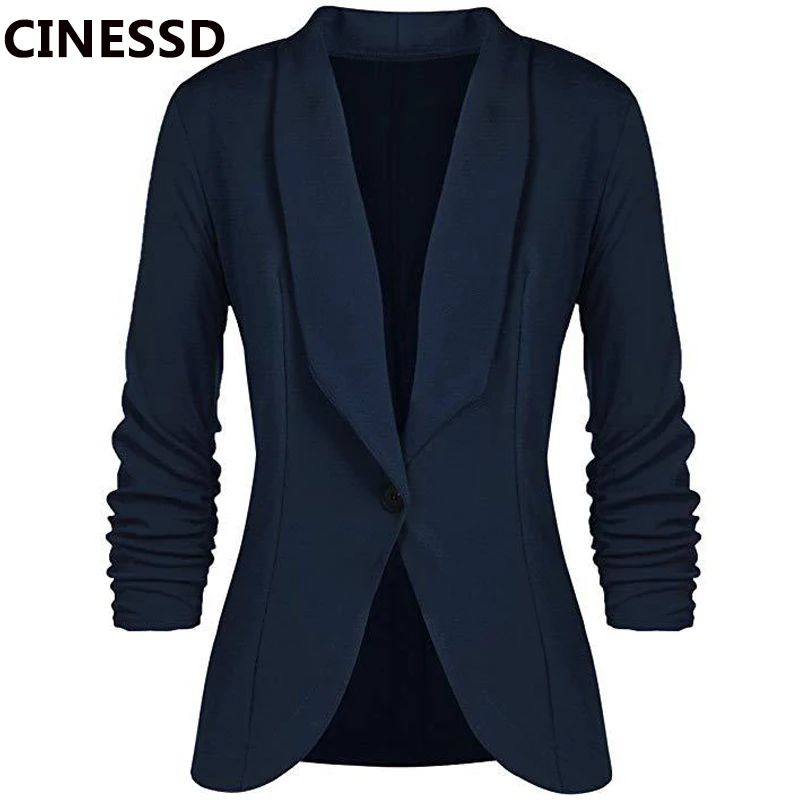 Special Offer CINESSD Office Lady Blazers płaszcz jednolity kolor, długi rękaw sweter przycisk garnitur casual granatowy drapowana cienka bawełna kobiety żakiet z dzianiny dresowej Discount 53% Today!