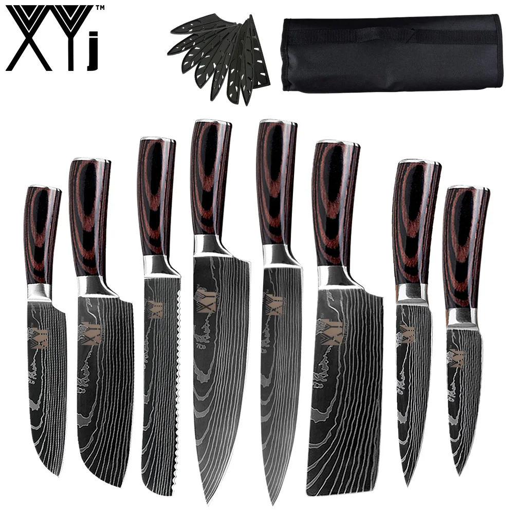 Special Offer XYj damaszek ze stali nierdzewnej zestaw noży stalowych z rolki torba wysokiej jakości wzór damaszek nóż szefa kuchni mięso tasak akcesoria kuchenne Discount 72% Today!