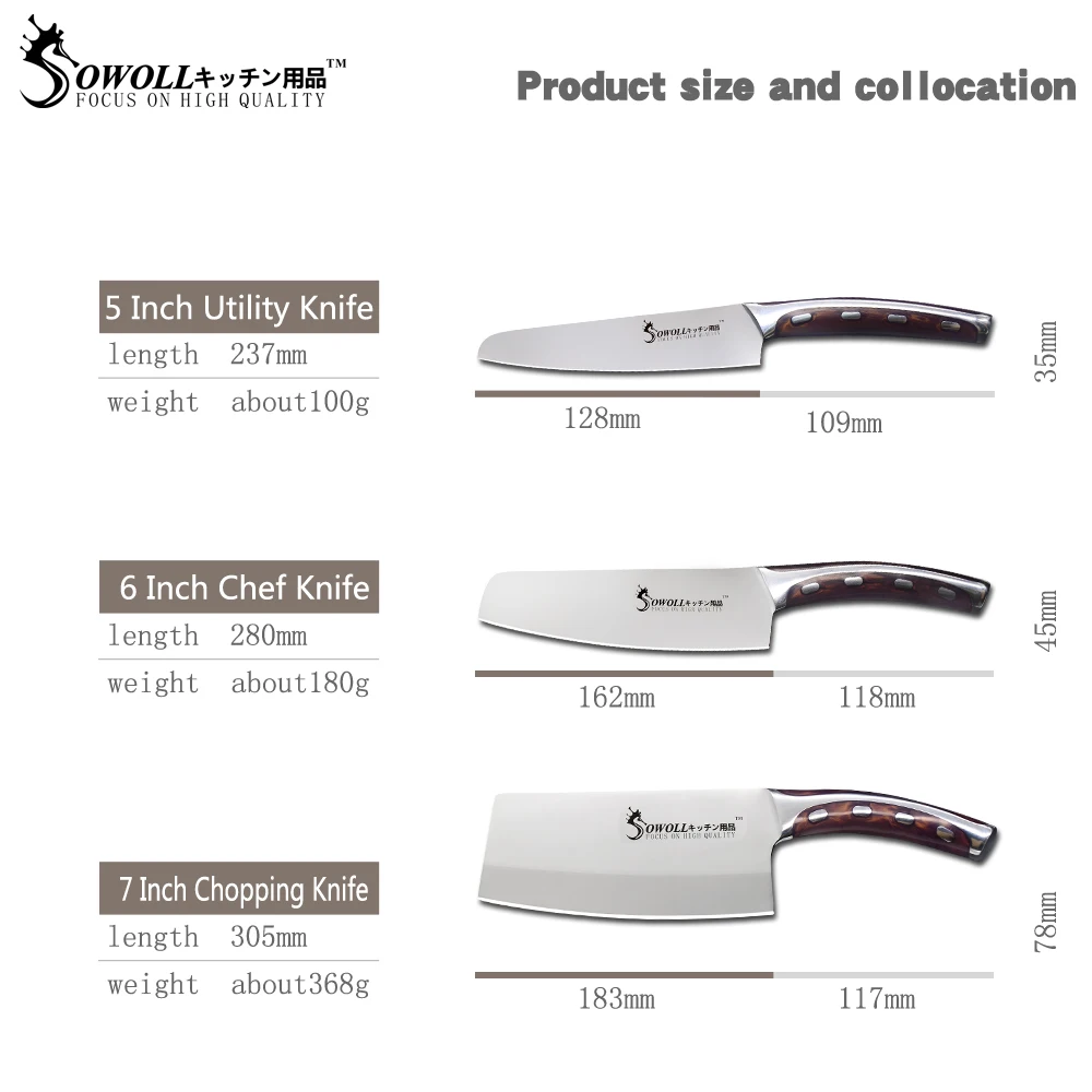 Special Offer Sowoll 3 sztuka ze stali nierdzewnej zestaw noży kuchennych 5 6 7 cal żywica Fibre uchwyt wysokiej węgla ostrze Utility Chef do krojenia noże Discount 78% Today!