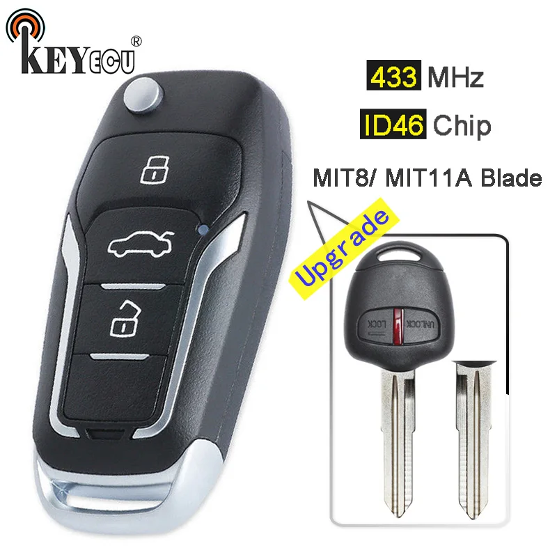 Special Offer KEYECU 433MHz ID46 ulepszony odwróć klucz zdalny z dwoma przyciskami Fob dla Mitsubishi Pajero, Lancer i Outlander lewy MIT11R prawy ostrze Discount 10% Today!