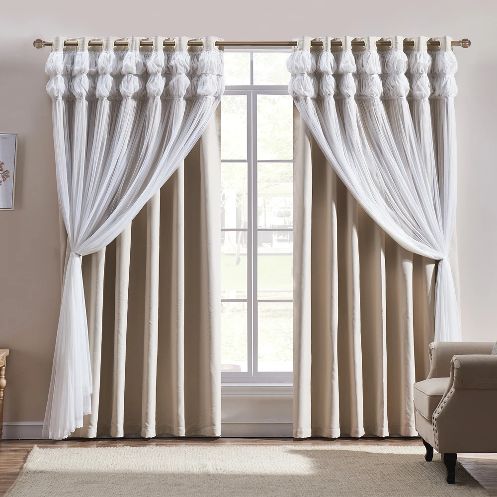 Product Name: Frędzle latarnie głowa termiczna czarna na zewnątrz zasłony okienne zasłony kość słoniowa kurtyna + woal przezroczysta tkanina sypialnia niestandardowe okno życia