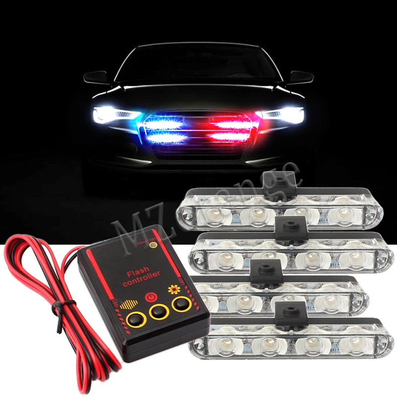 Special Offer 4x4 LED DC 12V sygnalizator optyczny światło policyjne migające strażacy światła pogotowia biały żółty czerwony niebieski CarTruck światło dzienne Discount 20% Today!