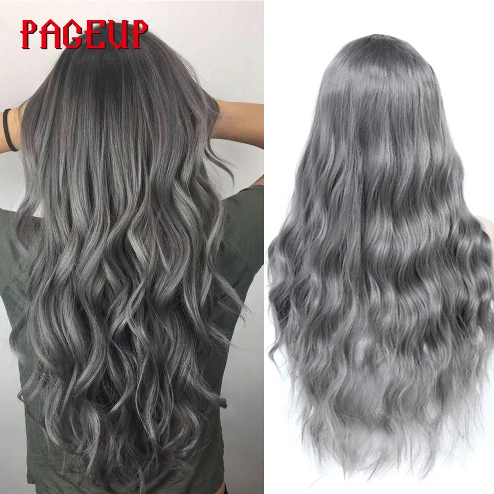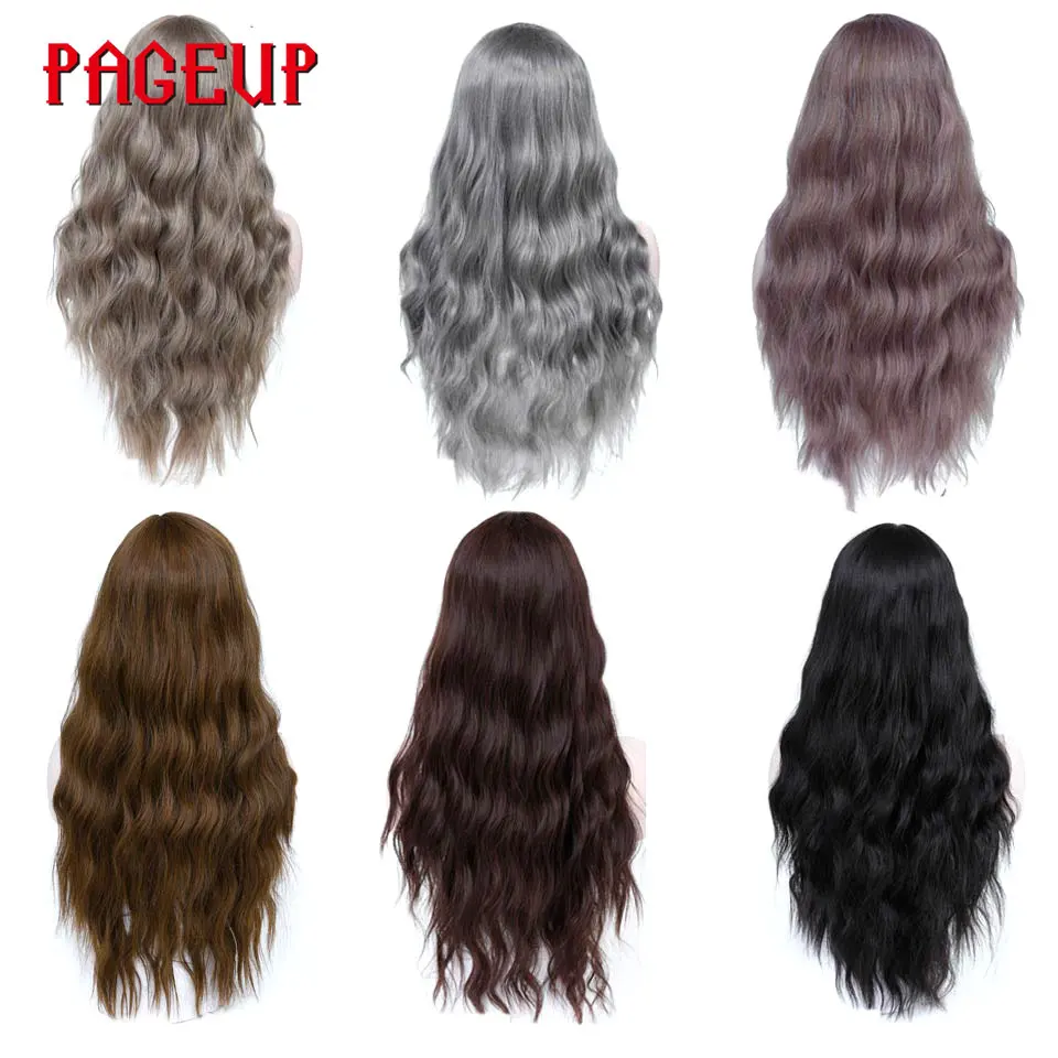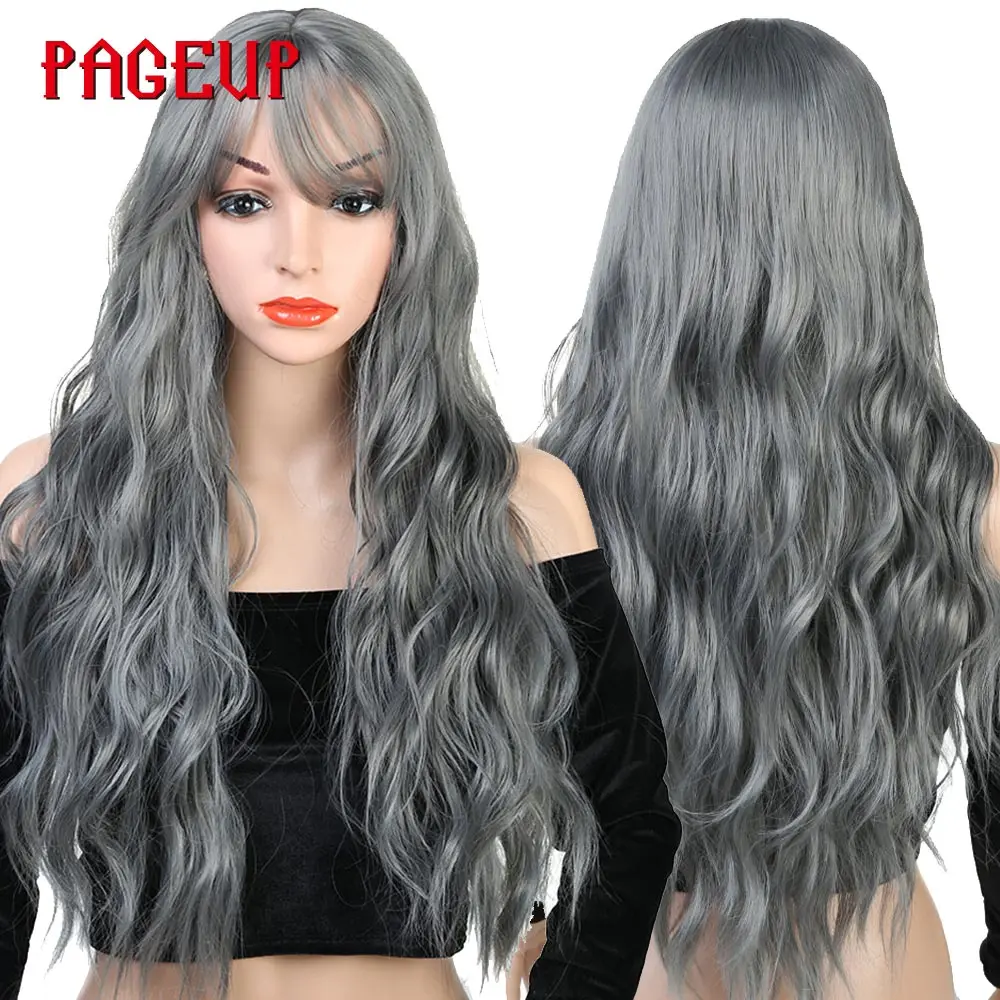 Product Name: Pageup faliste włosy Cosplay długie peruki z grzywką dla kobiet panie żaroodporne czarny niebieski blond różowy zielony szary peruka syntetyczna