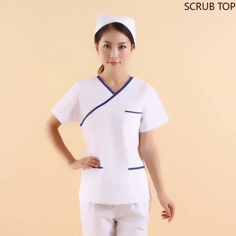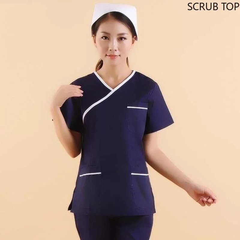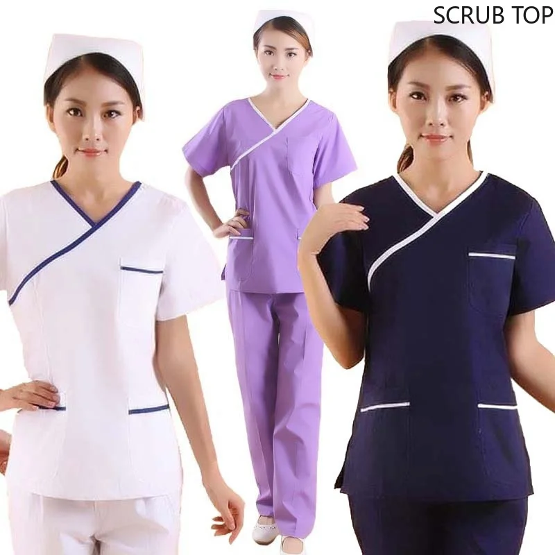 Special Offer Moda damska peeling Top kolor blokowanie projekt stroje medyczne mundury pielęgniarskie krótki rękaw dekolt w serek (tylko Top) Discount 30% Today!