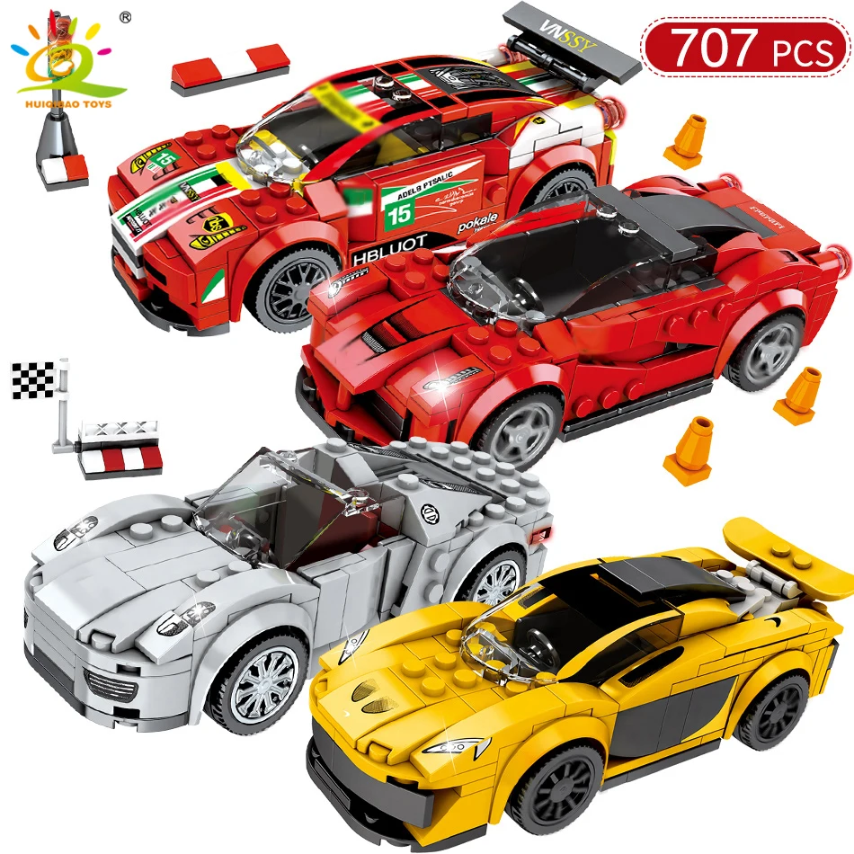 Product Name: 707 sztuk 4 samochód wyścigowy prędkości mistrzów DIY klocki Legoing Technic City Racer dane samochody sportowe cegły zabawki dla dzieci dla dzieci