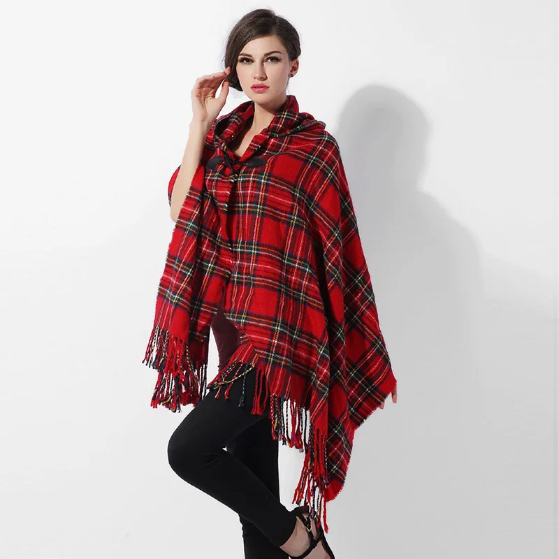 Product Name: 2019 moda kobiety Bohemia peleryna z kapturem Plaid Poncho szale i okłady zimowy ciepły koc szalik Femme ponadgabarytowych Pashmina Tassel