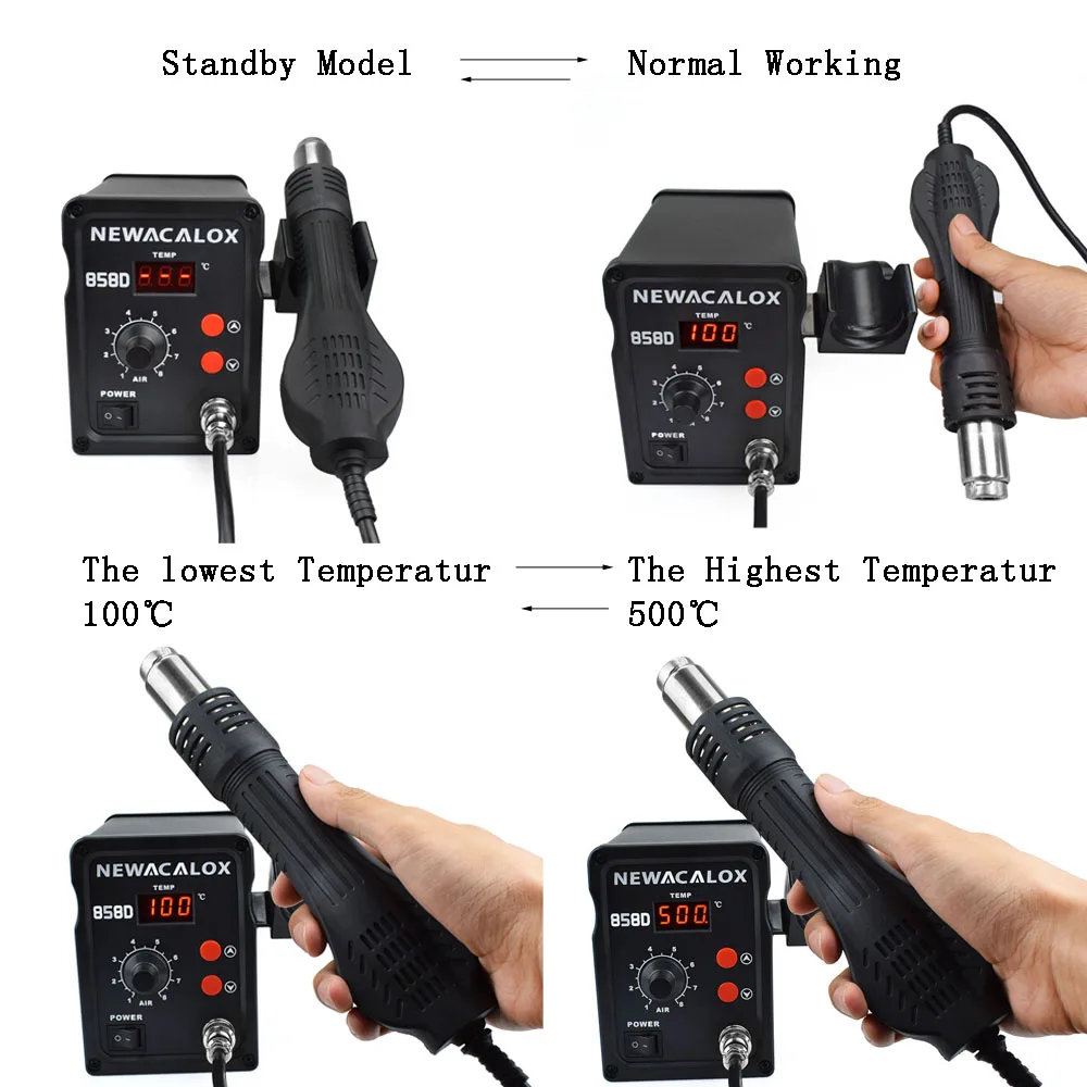 Product Name: NEWACALOX 858D 700W 220V ue usa 500 stopni stacja lutownicza na gorące powietrze termoregul LED Heat Gun suszarka nadmuchowa do BGA IC rozlutownica