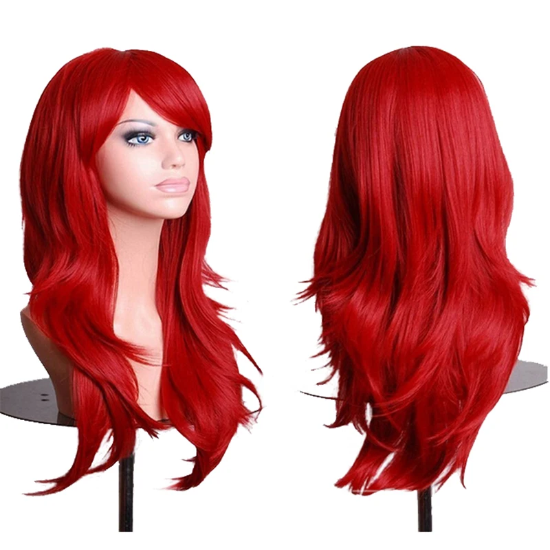 Product Name: Allaosify naturalne fale peruka do cosplay czerwony zielony Puprle różowy czarny niebieski Sliver szary blond brązowy 26 \"syntetyczne peruki do włosów dla kobiet