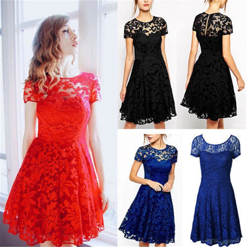 Special Offer 6XL Plus rozmiar sukienka moda kobiety elegancka słodka Hallow Out koronkowa sukienka Sexy Party księżniczka Slim letnie sukienki Vestidos czerwony niebieski Discount 0% Today!