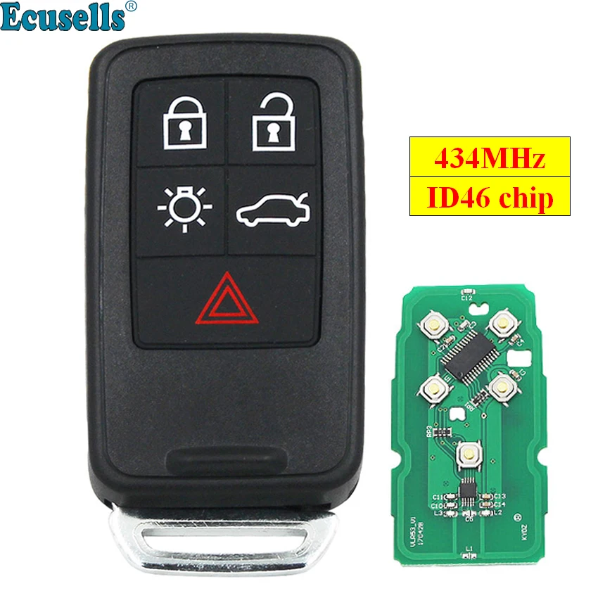 Special Offer Nowy zamiennik 5 przycisk klucz zdalny inteligentny kluczyk samochodowy fob 434Mhz ID46 układu dla Volvo XC60 S60 S60L V40 V60 S80 XC70 KYDZ Uncut Blade Discount 11% Today!
