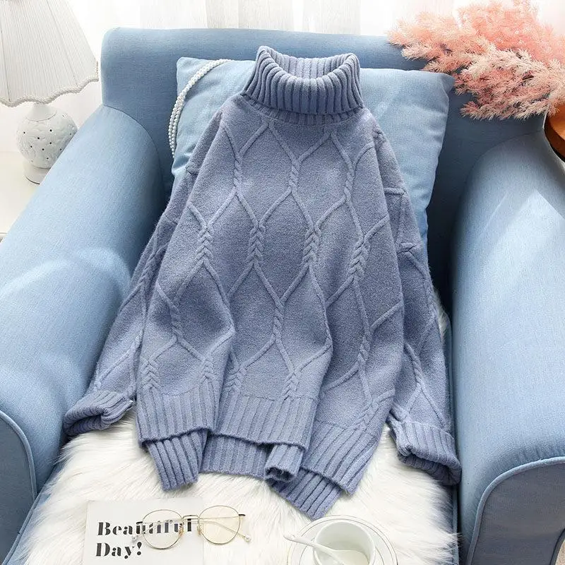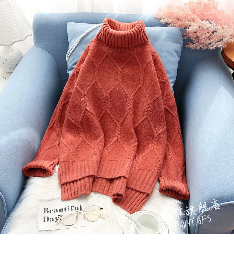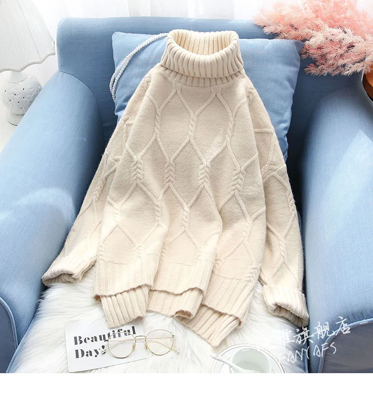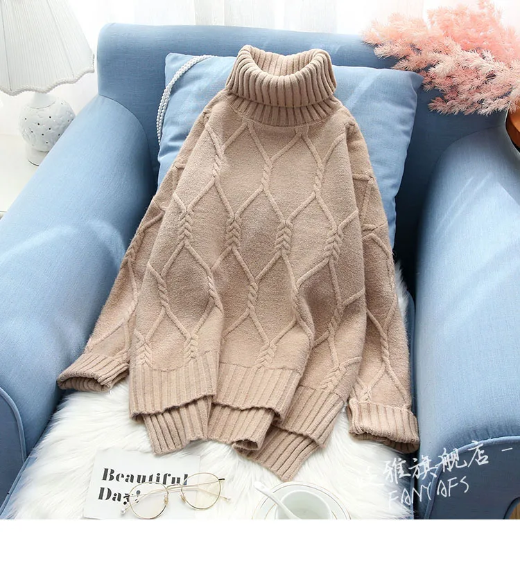 Product Name: Damski sweter koreański damski damski golf Argyle luźna bluzka nietoperz swetry gruby Khaki niebieski rdzawa czerwień kremowy biały