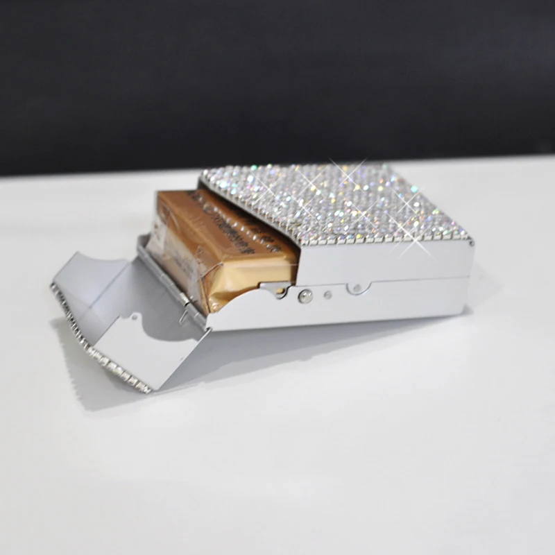 Special Offer Crystal popielniczka samochodowa błyszcząca diamentowa papierośnica Box różowa wiatroodporna zapalniczka plazmowa Slim dla kobiet Discount 19% Today!