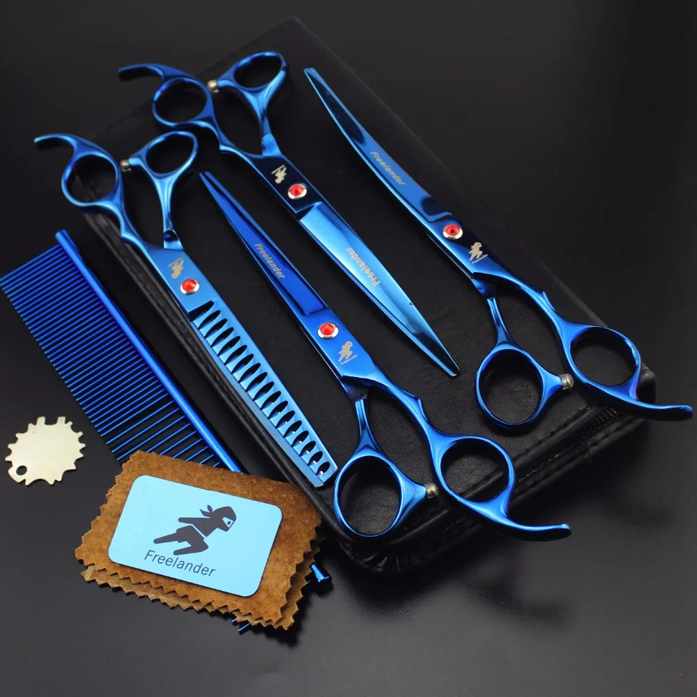 Special Offer 7 cal niebieski nożyczki do sierści fryzjerskie zestaw 4 sztuka zestaw połączenie gięcia nożyczki przerzedzenie specjalne nożyczki japoński hairdressi Discount 27% Today!