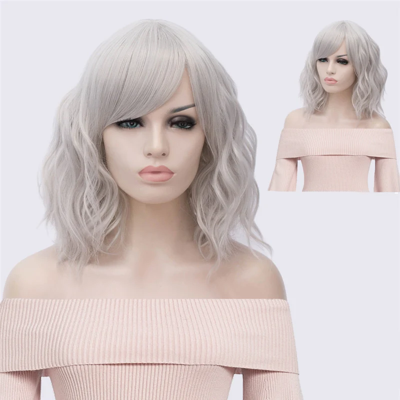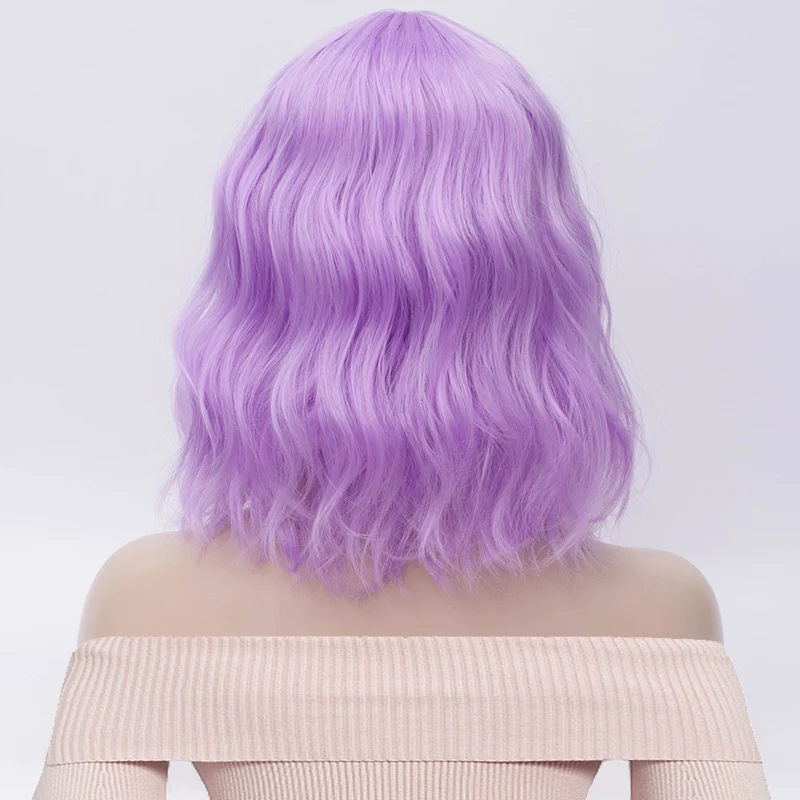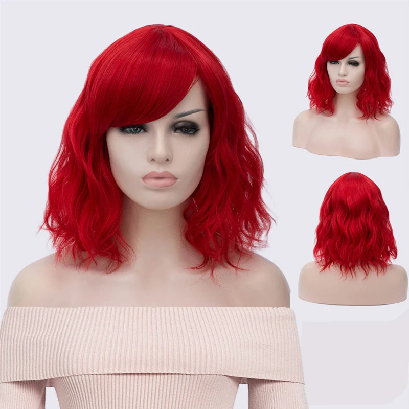 Product Name: MSIWIGS krótkie Cosplay fioletowe peruki dla kobiet kręcone czerwony niebieski peruka z boku Bangs zielony różowy włosy syntetyczne peruka żaroodporne