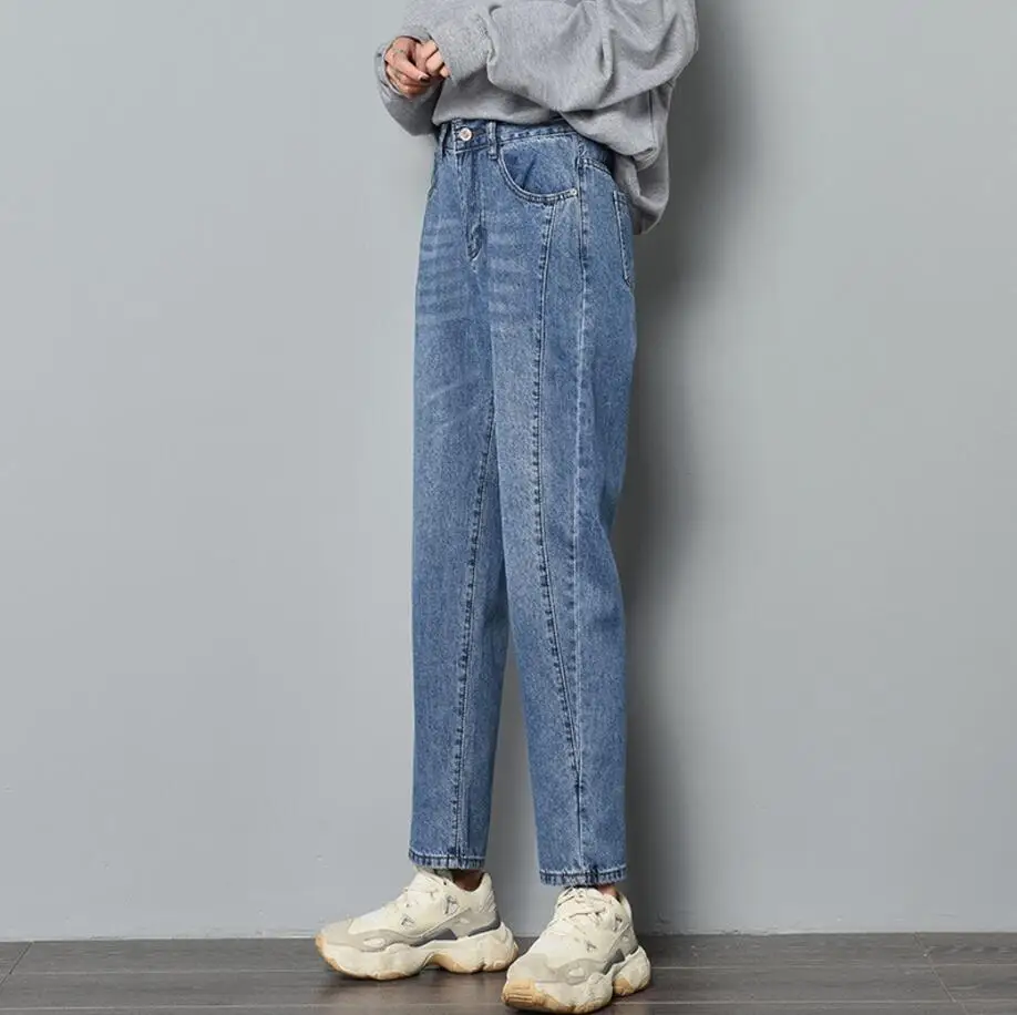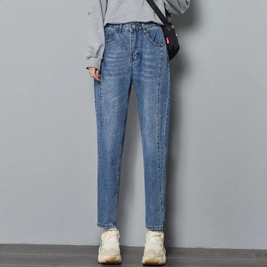 Product Name: Bawełniane proste dżinsy kobieta elastyczność wysokiej talii dżinsy kobieta plus rozmiar dżinsy dla mamy niebieskie nowe luźne szarawary gorąca sprzedaż