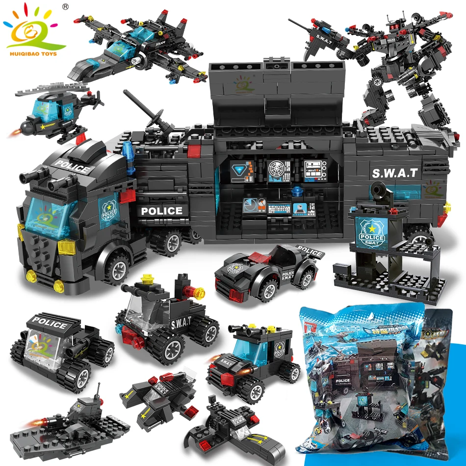 Special Offer SWAT posterunek policji model ciężarówki klocki legoings miasto maszyna helikopter figurki samochodów cegły zabawki edukacyjne dla dzieci Discount 54% Today!