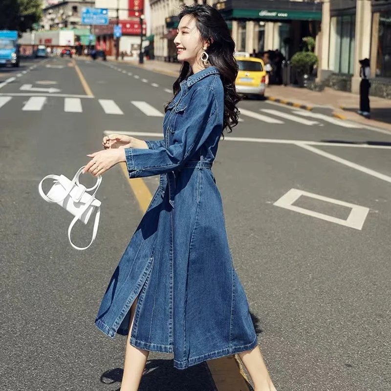 Special Offer Europa moda koszula dżinsowa sukienka kobiety z długim rękawem niebieskie dżinsy sukienki kieszenie wiosna jesień ubrania retro Discount 0% Today!